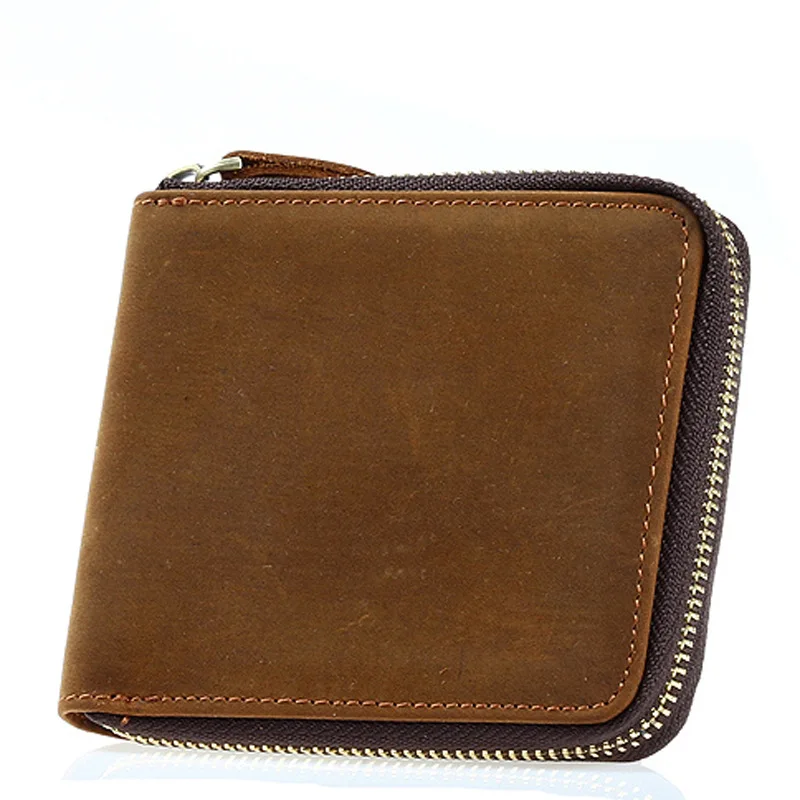 BEST SELLER Retro Crazy Horse Leather Wallet Men Real Leather Zipper Wallet Clutch Purse