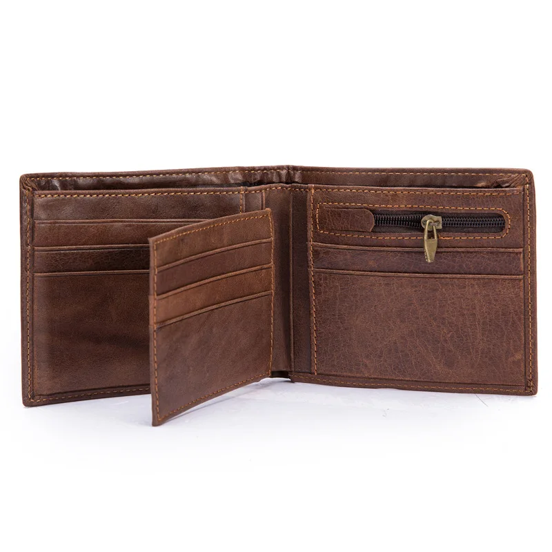Best Seller Retro Mens Genuine Leather Cross Wallet Crazy Horse Layer Leather Wallet Business Official Wallet F