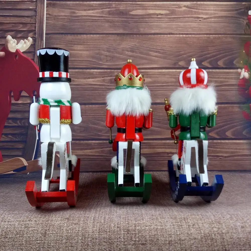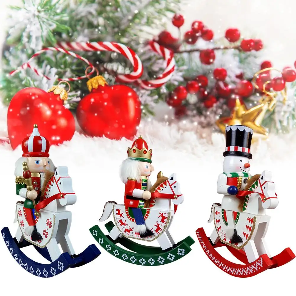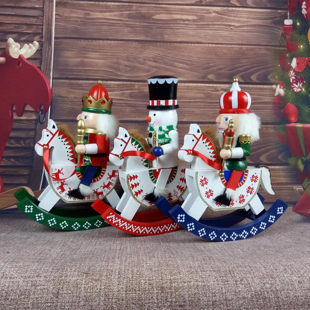 1PCS 30cm Nutcracker Wooden Puppet Figurine With Rocking Horse Wooden Crafts Christams Party Suppli