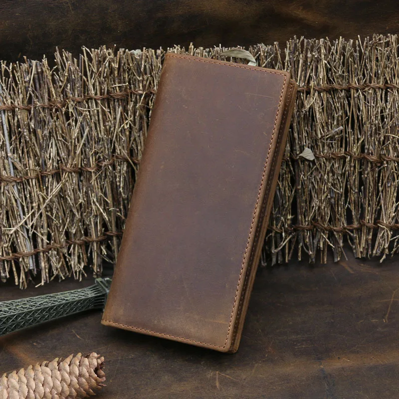 HIGH QUALITY Horse Leather MEN'S LONG Pattern Wallet Two-fold Genuine Leather Pure First Layer Leather Wallet Re
