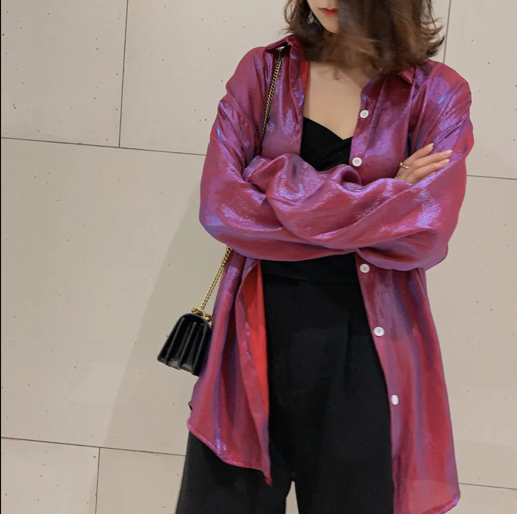 HIGH QUALITY Photo Shoot 2019 Current Dark Horse! Mermaid Ji Polarized Light Blingbling Loose-Fit Shirt