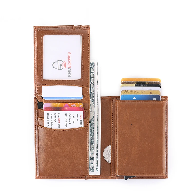 HIGH QUALITY 2020 Vintage Credit Card ID Card Holder Crazy Horse Handmade Leather Men Wallets Multi-Functional C