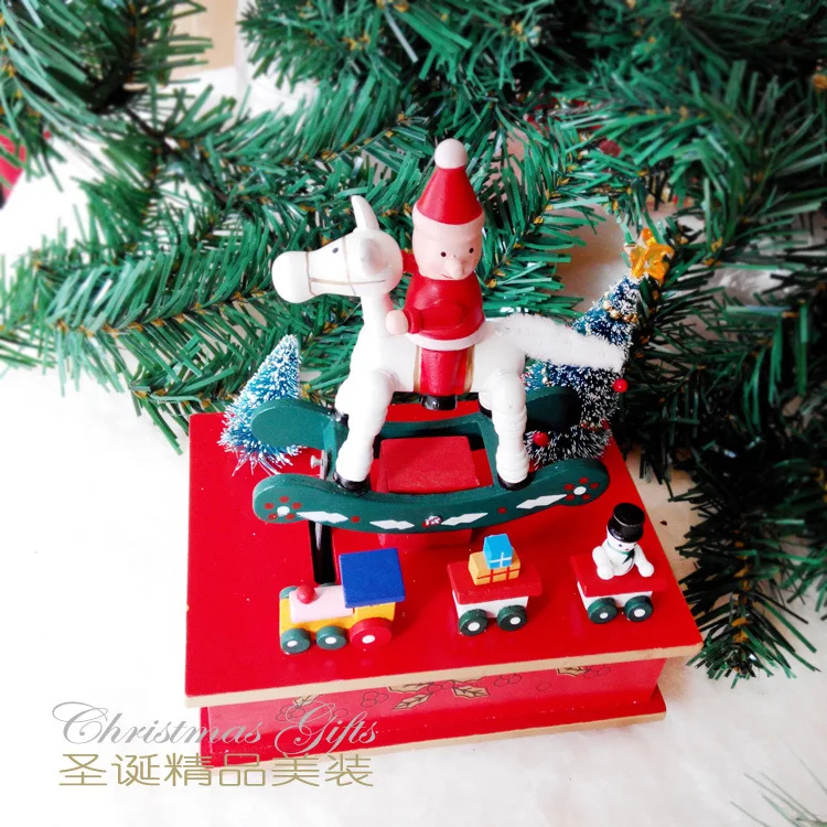 ORIGINAL Christmas gift wooden rocking horse music box birthday holiday gift window decoration