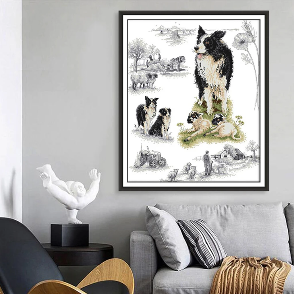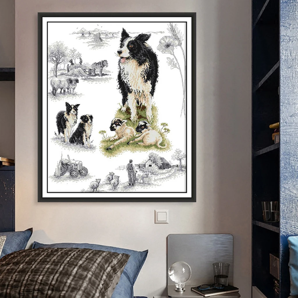 Review Joy Sunday Stamped Cross Stitch Horse Animal Dog Needlework Sets For Full Kits White Canvas DIY Hom