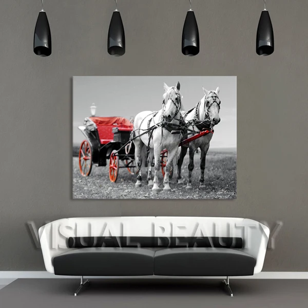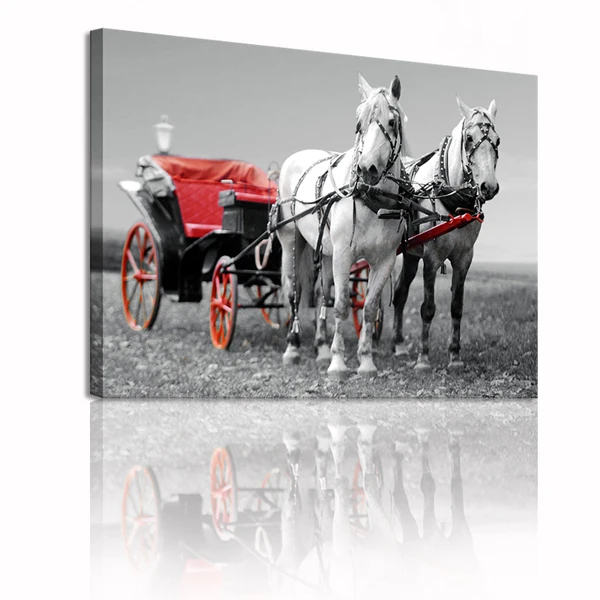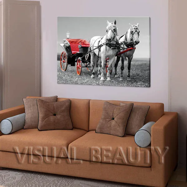 REVIEW TOP SELLER FREE SHIPPING Horse Art Painting with Two Horse Running Picture Painting On Canvas For Modern Home