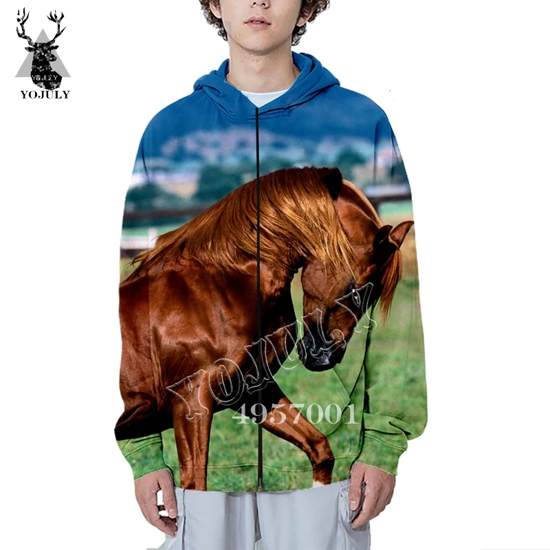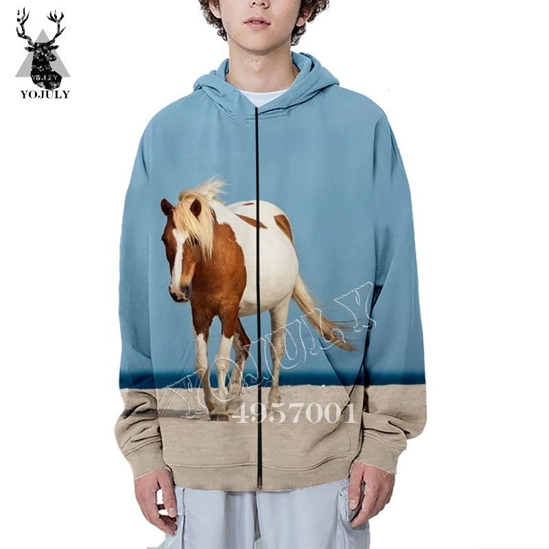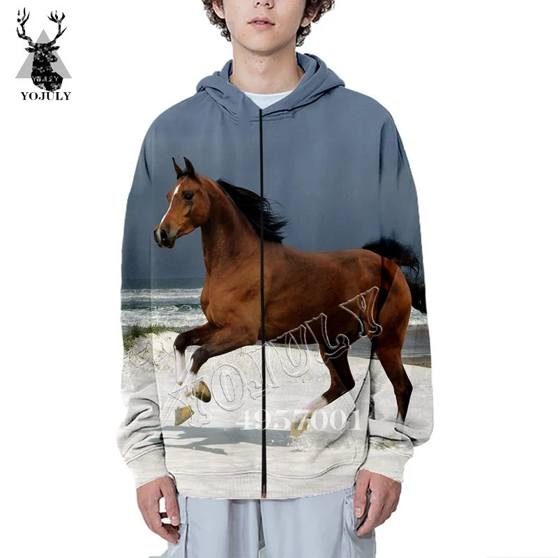 Unisex Casual Sweatshirt Clothing Novelty Street wear Men Fashion Zip Hoody Coat Horse Funny 3D Pri